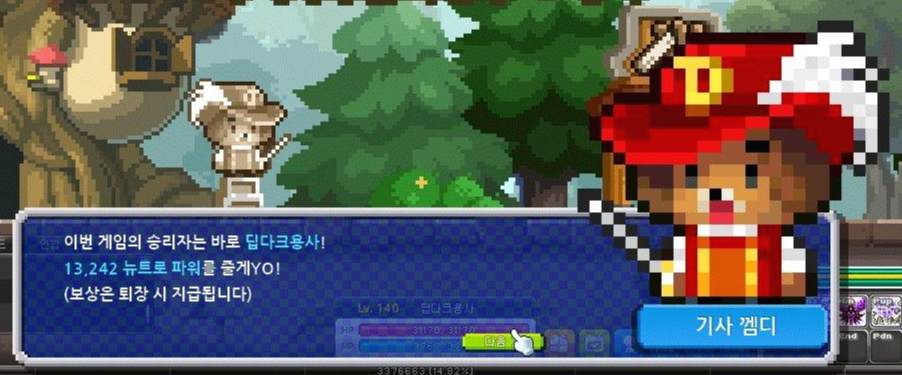 껨디와의 대결에서 승리하고 뉴트로 파워를 얻어보자!
