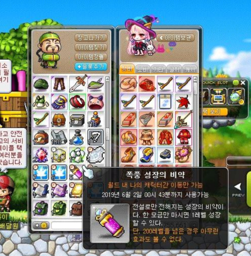 폭풍 성장의 비약 한 개는 레벨 199인 플위가 먹게 해서