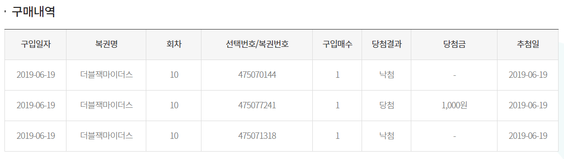 당첨된건가!후다다닥 구매/당첨 내역을 봤어요.