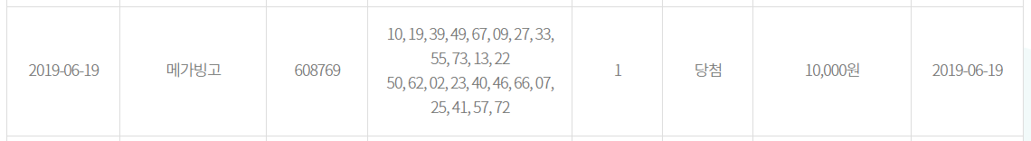 메가빙고에 당첨이 되어서 1만원을 얻었네요!