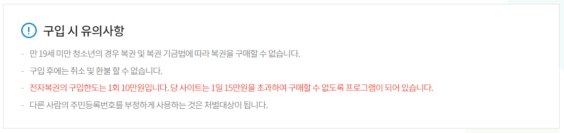 구입시 유의사항 참참, 복권은 만 19세이상부터 즉, 생일이 지난 20살부터 구매할 수 있어요
