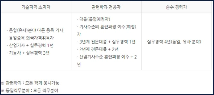 등등 경우마다 응시자격이 다 다른데 그 중에 나는 고졸이고, 다른 자격증을 딴 게 없으므로 순수 경력자로 응시할 수 있습니다. 순수 경력자는 실무경력 4년이상이면 됩니다.