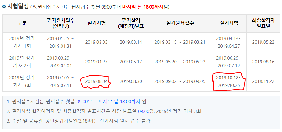 그리하여 정보처리기사 2019년 시험일정을 뒤늦은 감이 없지 않아 있지만 찾아보았습니다.