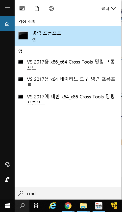 그 명령 프롬프트를 관리자 권한으로 실행하는 것에도 세 가지의 방법이 있으며 그 중에 3번째가 제일 간편한 것 같다.검색어에 cmd라고 검색하면 명령프롬프트가 나온다. (검색어 명령어: Win키+ s)