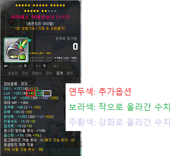 주스탯, 데미지, 올스탯 또한 붙어 있으면 베스트.