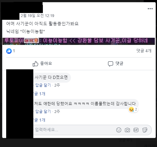 도사견 길드의 전 간부였음이하천이스닉 강환 대리 사기 쎈뜰, 거래용캐2 무통사기 거래본명 채수일