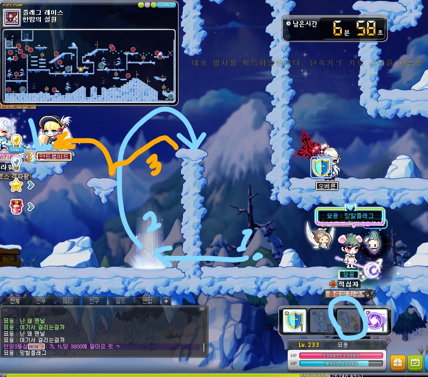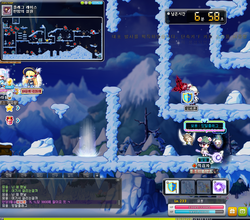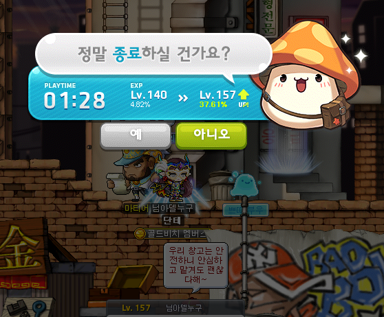 7시 플래그 5분 전이어서 본캐로 플래그를 돌아야 하므로 잠시 종료