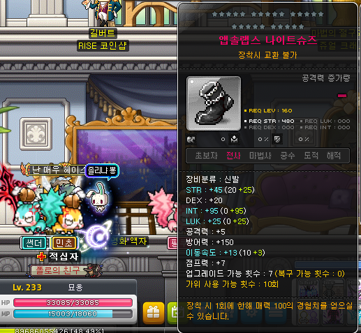 S코어가 2개 있어서 앱솔랩스 시프슈즈랑 앱솔랩스 나이트슈즈