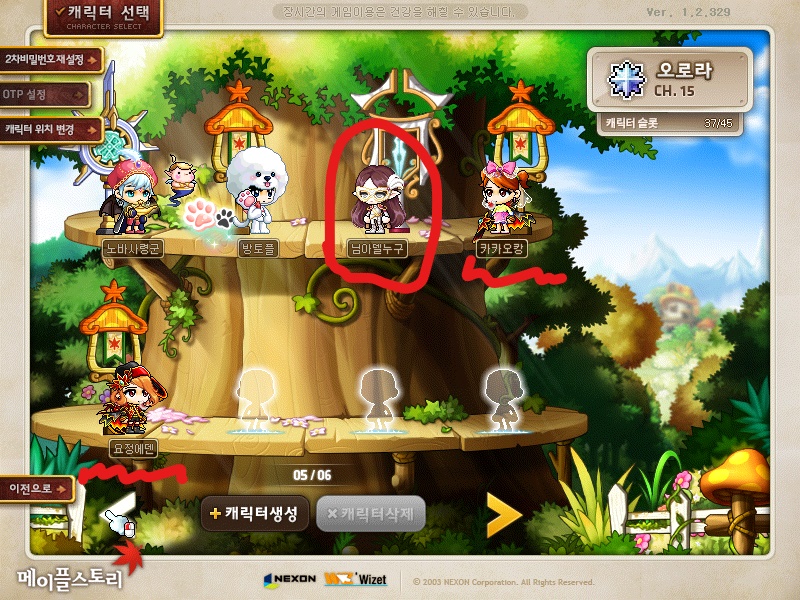 버닝서버에서 키운 두개의 메가버닝 캐릭터를 옮긴 후