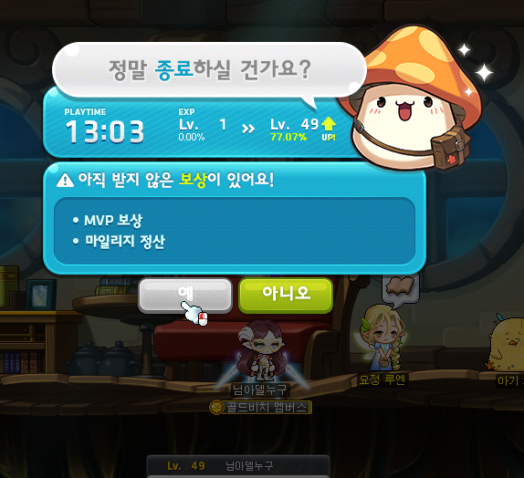 7시 플래그 5분 전이어서 본캐로 플래그를 돌아야 하므로 잠시 종료