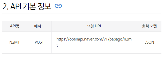 API 가이드와 기본정보를 보면 POST로 요청 URL에 요청하고(Requset),