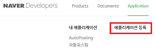 그 다음 Application에서 애플리케이션 등록을 클릭한다.