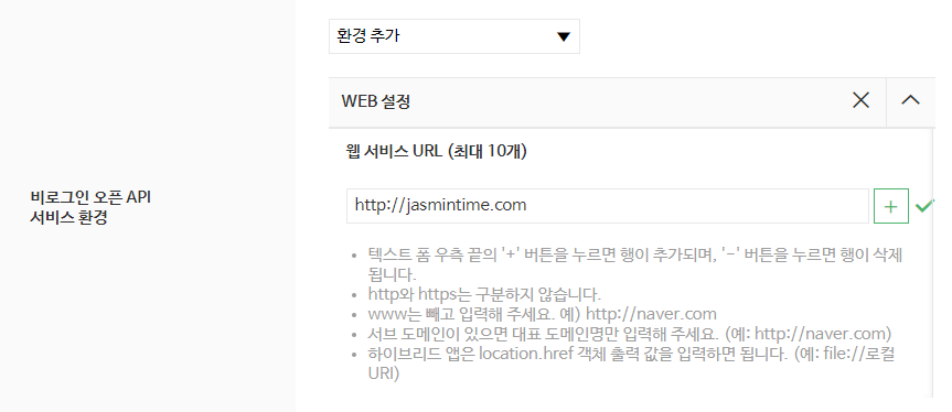 웹 서비스 URL은 가지고 있는 도메인으로 입력하였는데