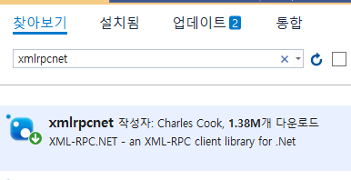 2) 찾아보기에서 xmlrpcnet을 검색하고, 설치한다.