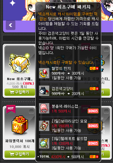캐시샵에 들어가니까 New 최초구매 패키지를 또 구매할 수 있었다.