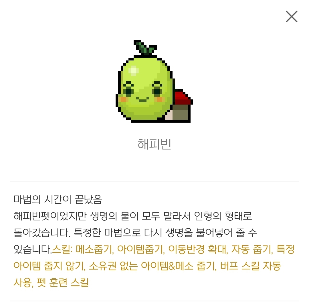메이플스토리 펫 해피빈 그때 받은 펫인 해피빈.