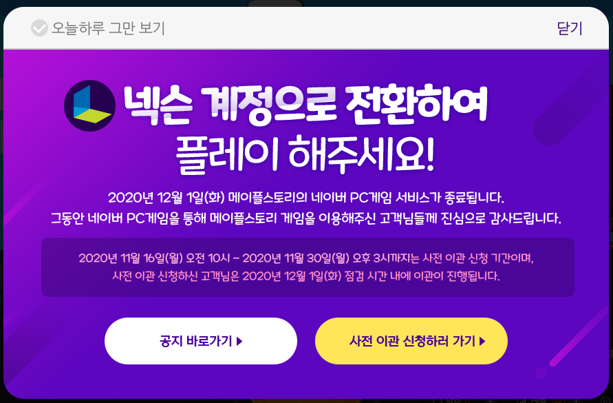 그런데 이제는 네이버 PC게임과 메이플스토리와의 이 채널링 시스템을 종료한다고 한다.