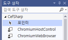 설치가 끝나면 도구상자에 CefSharp이 자동으로 추가가 되었을 경우 도구상자에서 ChromiumWebBrowser 컨트롤을 폼 디자인에 드래그앤 드랍해서 사용한다.