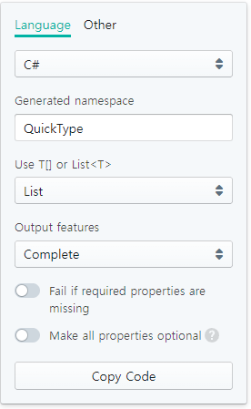 C#의 경우 변환 결과를 Array인지 List인지 선택할 수 있다.