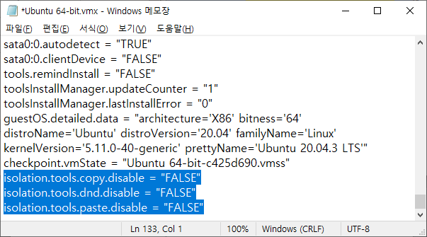 3) *.vmx 파일을 텍스트 파일로 (대표적인 것은 메모장) 연다.