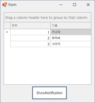 // ShowNotification 버튼을 클릭 하면 체크한 로우의 이름(Name)을 메시지박스로 띄운다. private void simpleButtonShowNotification_Click(object sender, EventArgs e) { foreach (int index in gridView1.GetSelectedRows()) { User user = gridView1.GetRow(index) as User; MessageBox.Show(user.Name); } }CheckChanged 이벤트 관련