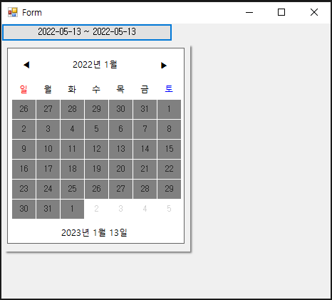 C# Winforms 직접 만든 달력 (커스텀 달력)닷넷/WinForms 2023. 1. 13. 10:22반응형