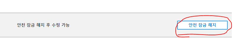 5) 안전 잠금을 해 놓았다면 해지 후 수정이 가능하므로 안전 잠금을 해지한다.