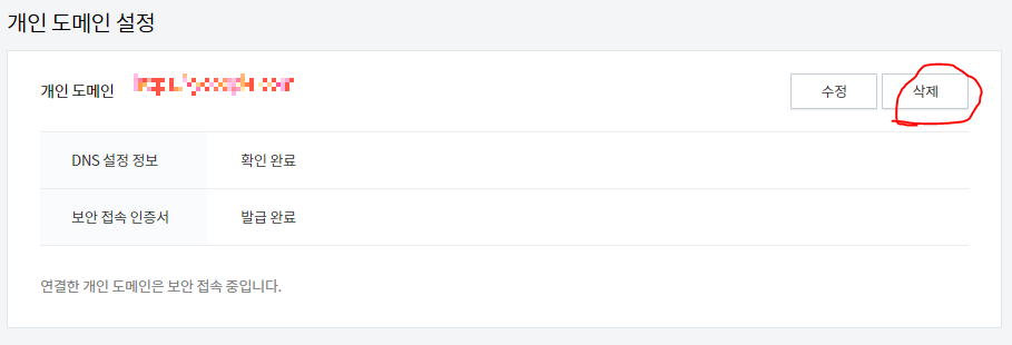 2) 개인 도메인 설정에서 해당 도메인 삭제