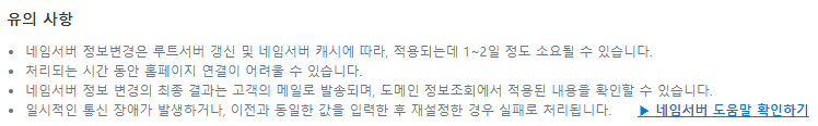 9) 네임서버는 적용되기까지 1~2일 정도 소요될 수 있다.