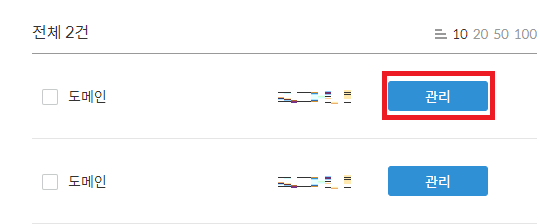 3) 도메인 목록에서 [관리] 버튼 클릭