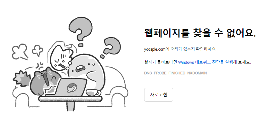 뭐지 싶어서 도메인으로 접속하니까 DNS_PROBE_FINISHED_NXDOMAIN 에러가 뜬다.