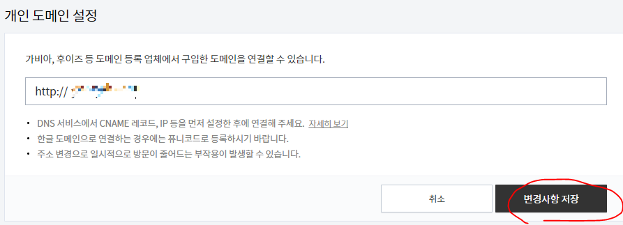 4) 도메인 입력 후 [변경사항 저장] 클릭