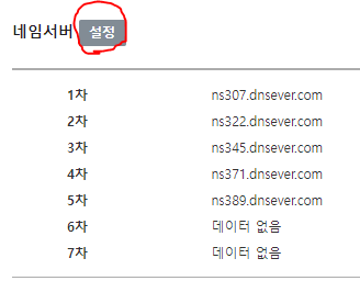다시 4) 네임서버 [설정] 버튼 클릭