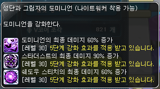 6차에서 마스터리 코어가 업데이트 되면서 퀸터, 배트, 오멘, 도미 4개를 강화해야 한다.