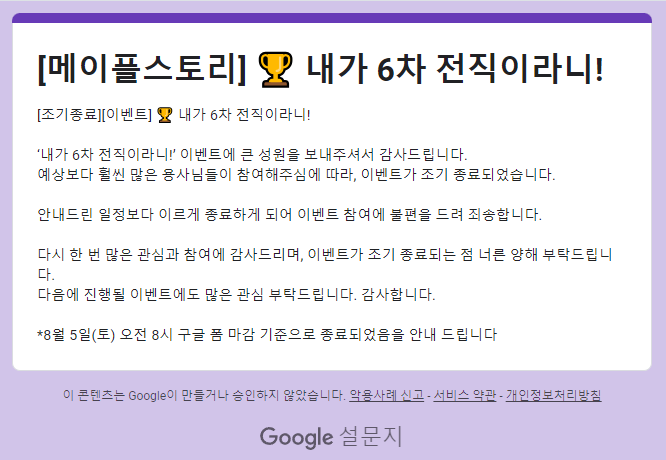 - [STEP 2] 아래 구글폼 링크에 촬영한 스크린샷과 월드명/캐릭터명을 제출한다!
