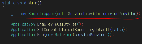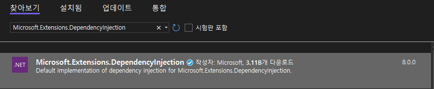 이때 DI를 위해 Microsoft.Extensions.DependencyInjection가 사용되었다.