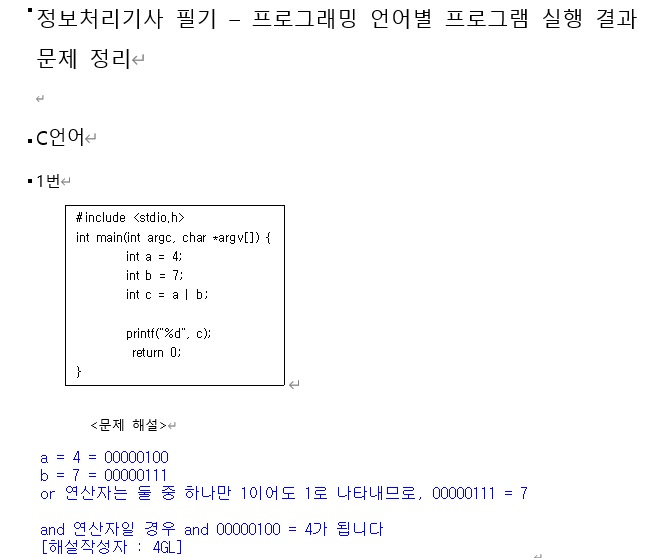 문제는 프로그래밍 언어인 C언어, JAVA, 파이썬의 프로그램 실행결과 문제를 중점적으로 외워야겠다.